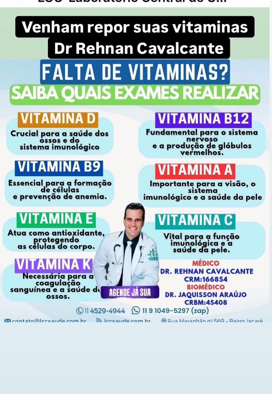 Exames de VITAMINAS . Rua Maranhão 569 jacare LCC [...]