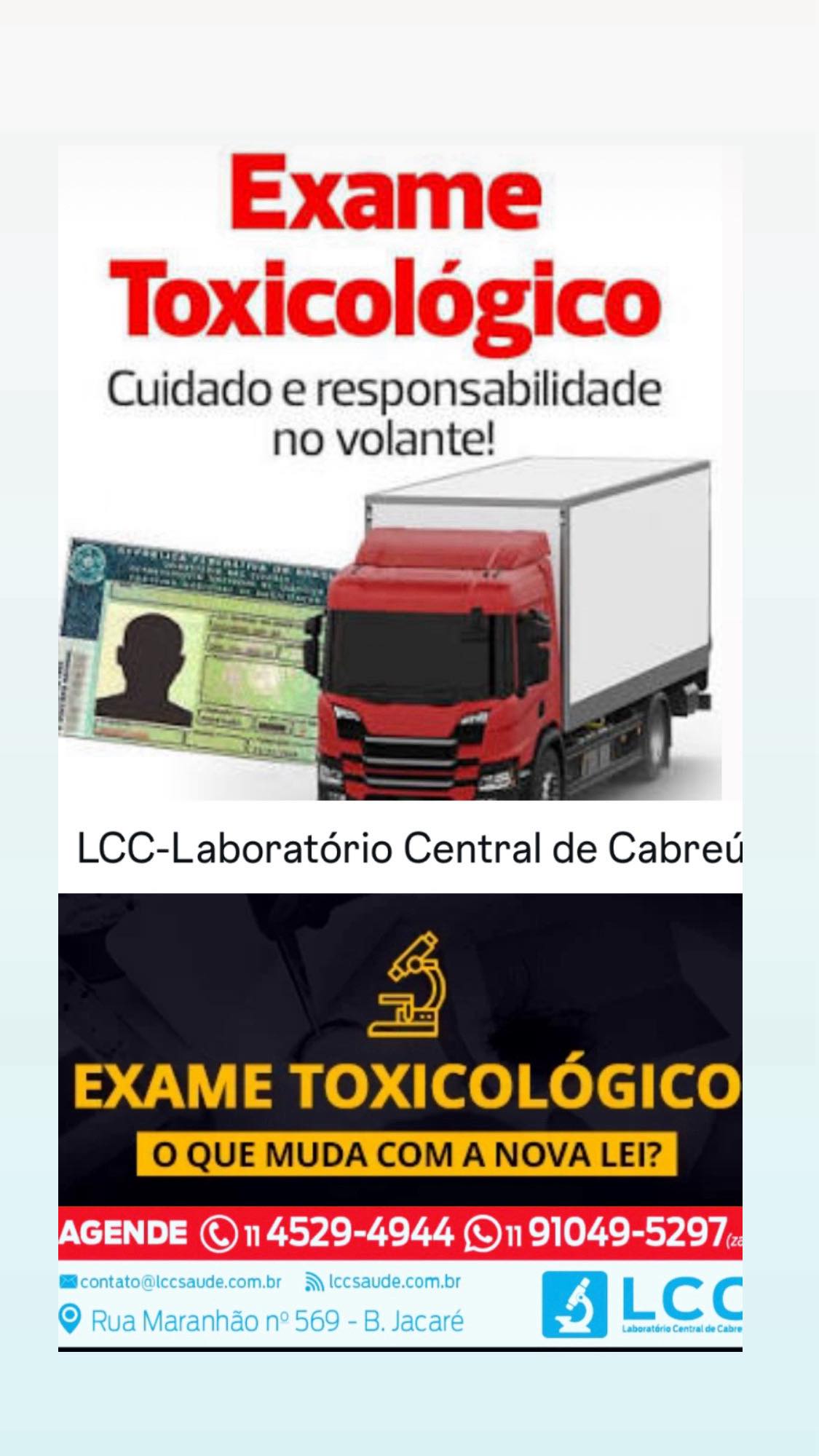 Faça seu Toxicologico no Lcc Fone: 114529-4944 ou WhatsApp
